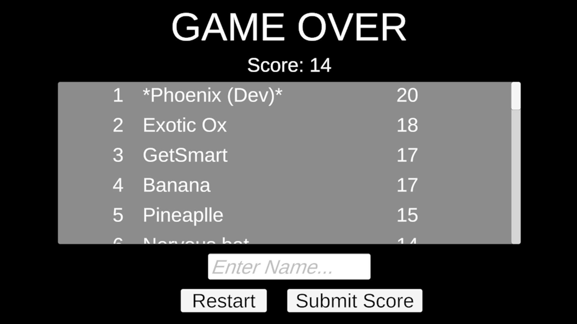 Current Dev High Score
